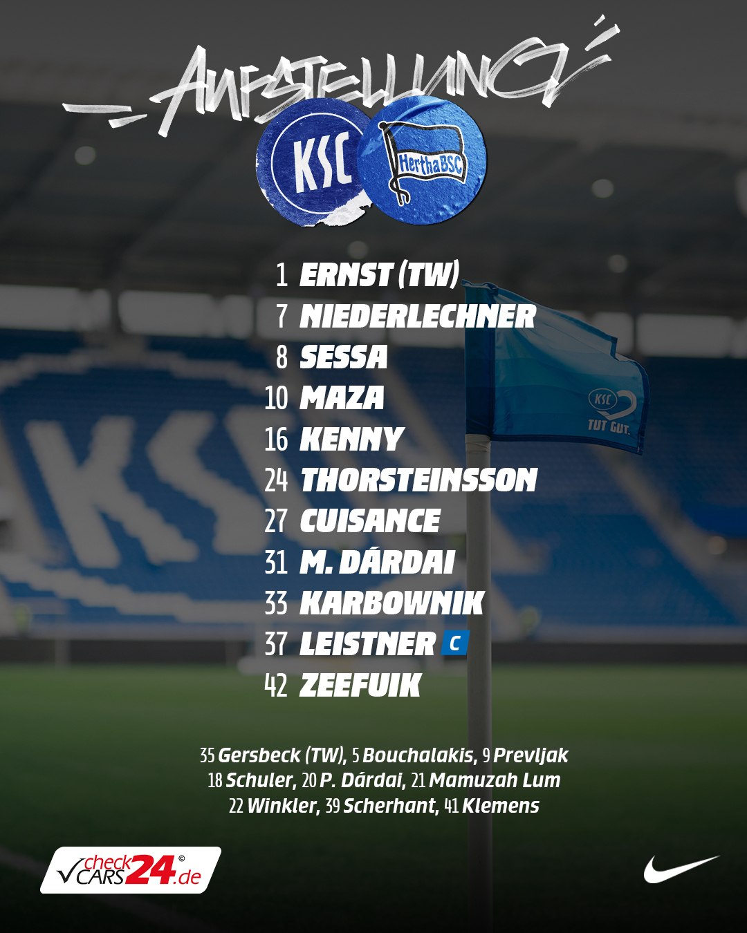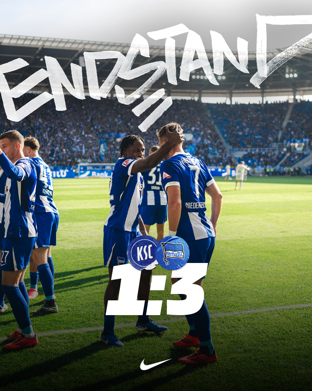 Mit einer starken Leistung und zwei weiteren Treffern in der zweiten Hälften fügen unsere Herthaner dem KSC die erste Saisonpleite zu. Obwohl die Hausherren in der Schlussphase logischerweise das Risiko erhöhten, ließen unsere Jungs nicht anbrennen.