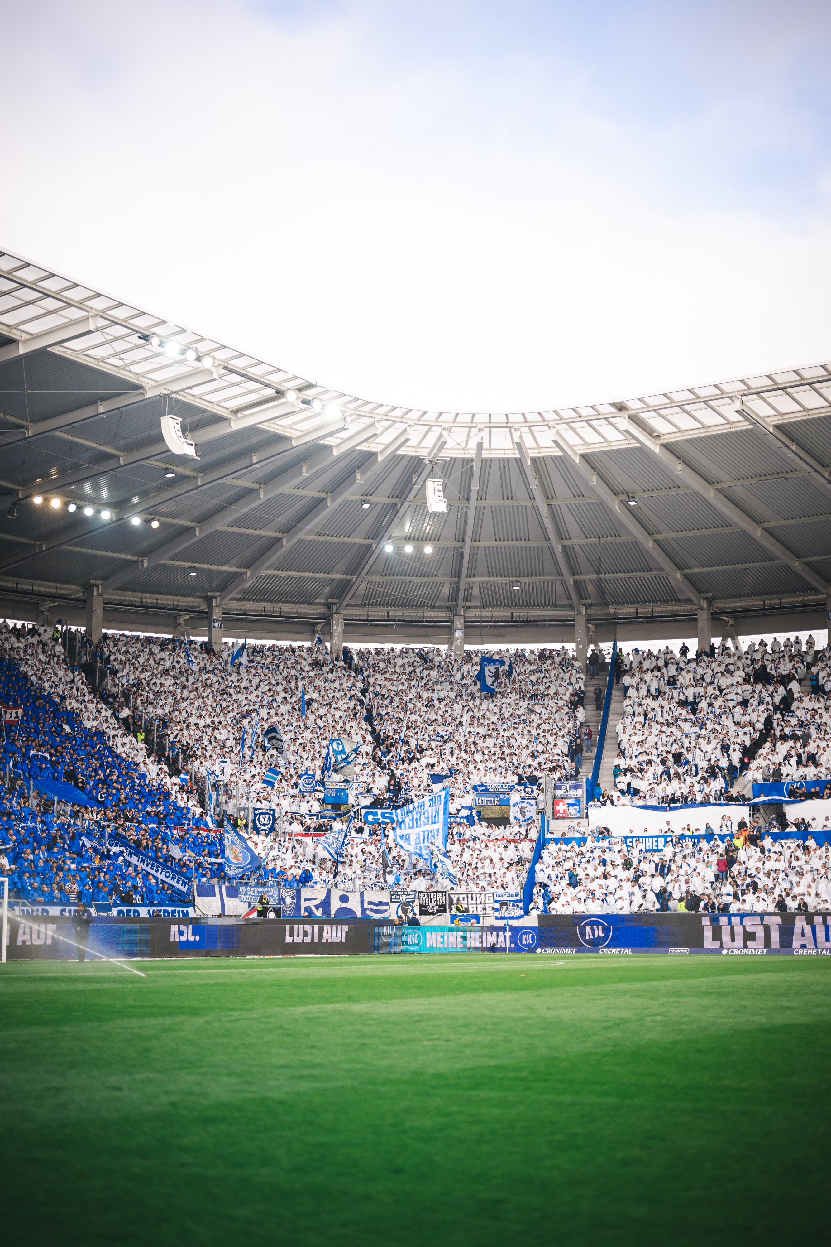 Die Fans bringen sich in Stimmung – und zwar mit einer beeindruckenden gemeinschaftlichen Choreo. Wahnsinn! Wir haben sowas von Bock!