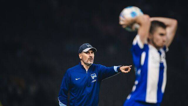 Ibo Maza behauptet die Kugel im Mittelfeld und holt einen Einwurf. Hertha baut ruhig aus der eigenen Hälfte neu auf.