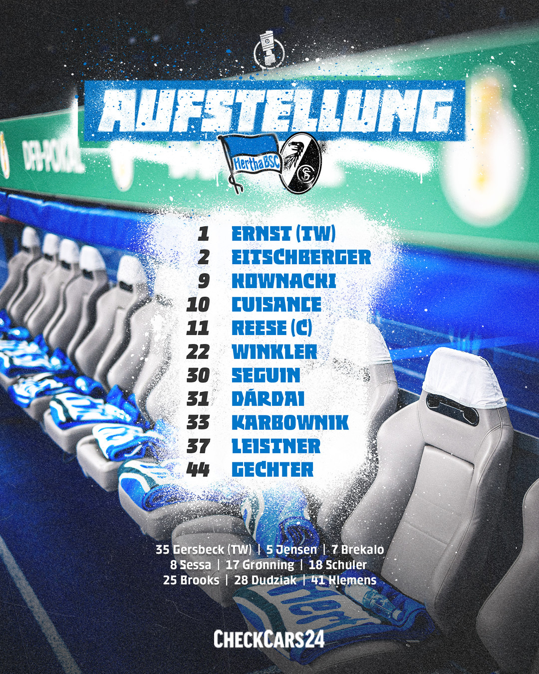 Hertha natürlich in den schönsten Farben, Freiburg spielt in rot.