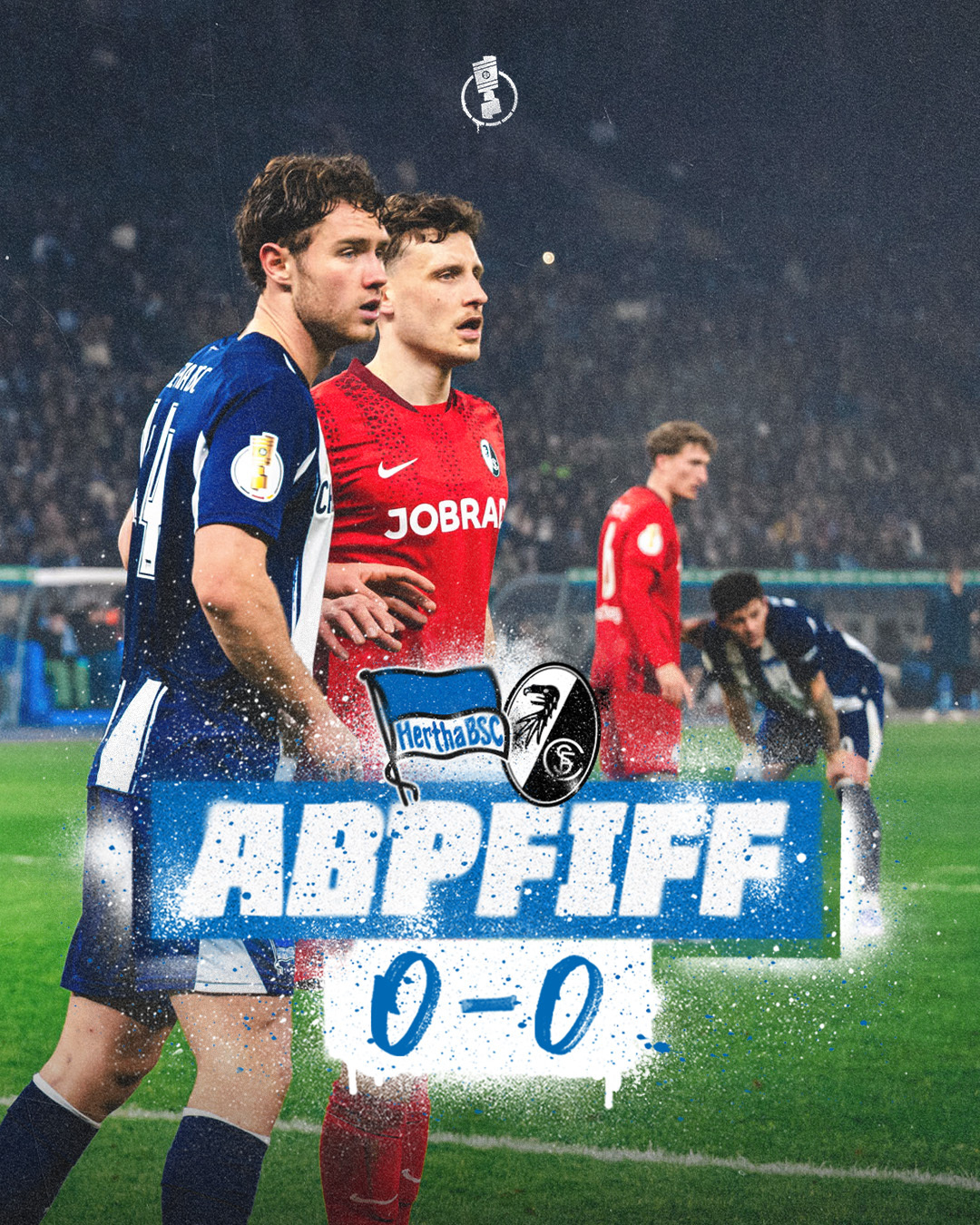 Ein ganz, ganz bitteres Ende eines dramatischen Fußballabends im Berliner Olympiastadion. Unsere Jungs haben den Bundesligisten am Rande der Niederlage, zwingen den SCF ins Elfmeterschießen - und müssen sich nun doch noch geschlagen geben. Hier folgen gleich Spielbericht und die Stimmen aus den Katakomben. Kopf hoch, Herthanerinnen und Herthaner! Samstag geht's schon in der Liga weiter.