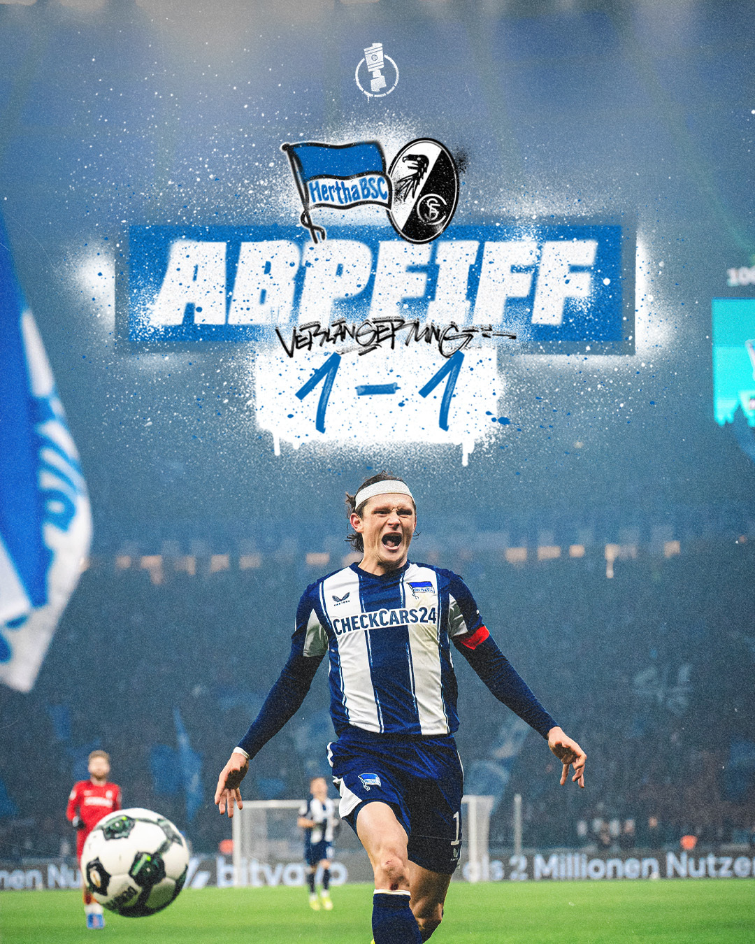 Verlängerung im Olympiastadion. Hertha beißt, wehrt sich mit allem was drin ist - und hält den Traum so am Leben. Weitere 30 Minuten gegen den Bundesligisten aus Freiburg folgen.