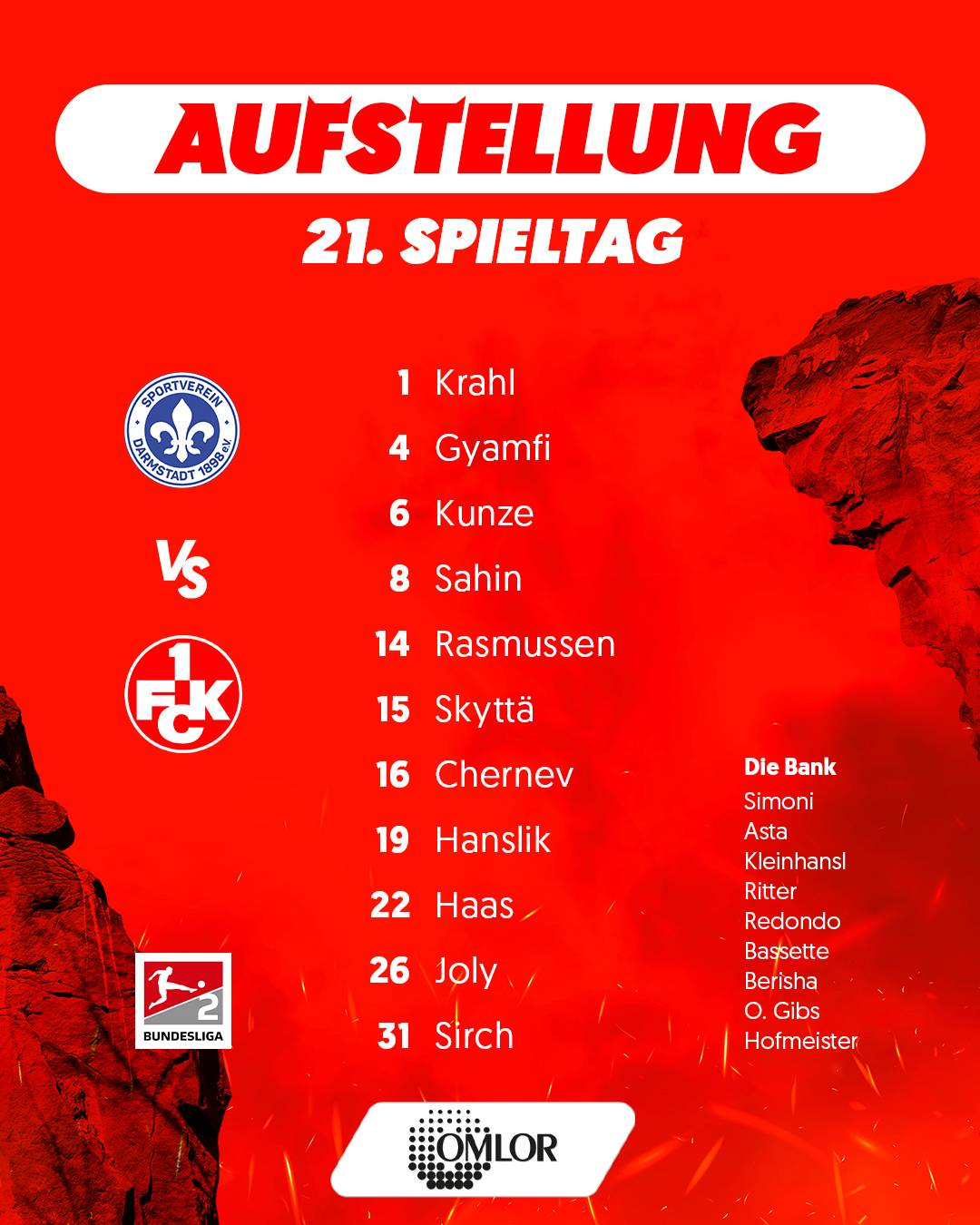 Der Blick auf die Aufstellung zeigt: Jacob Rasmussen, der letzte Woche einen Tag nach seinem Transfer nach Lautern noch von der Bank kam, steht erstmals in der Startaufstellung. Die letzte Neuverpflichtung, Mergim Berisha, steht auch direkt im Kader, nimmt aber zunächst noch auf der Bank Platz.
