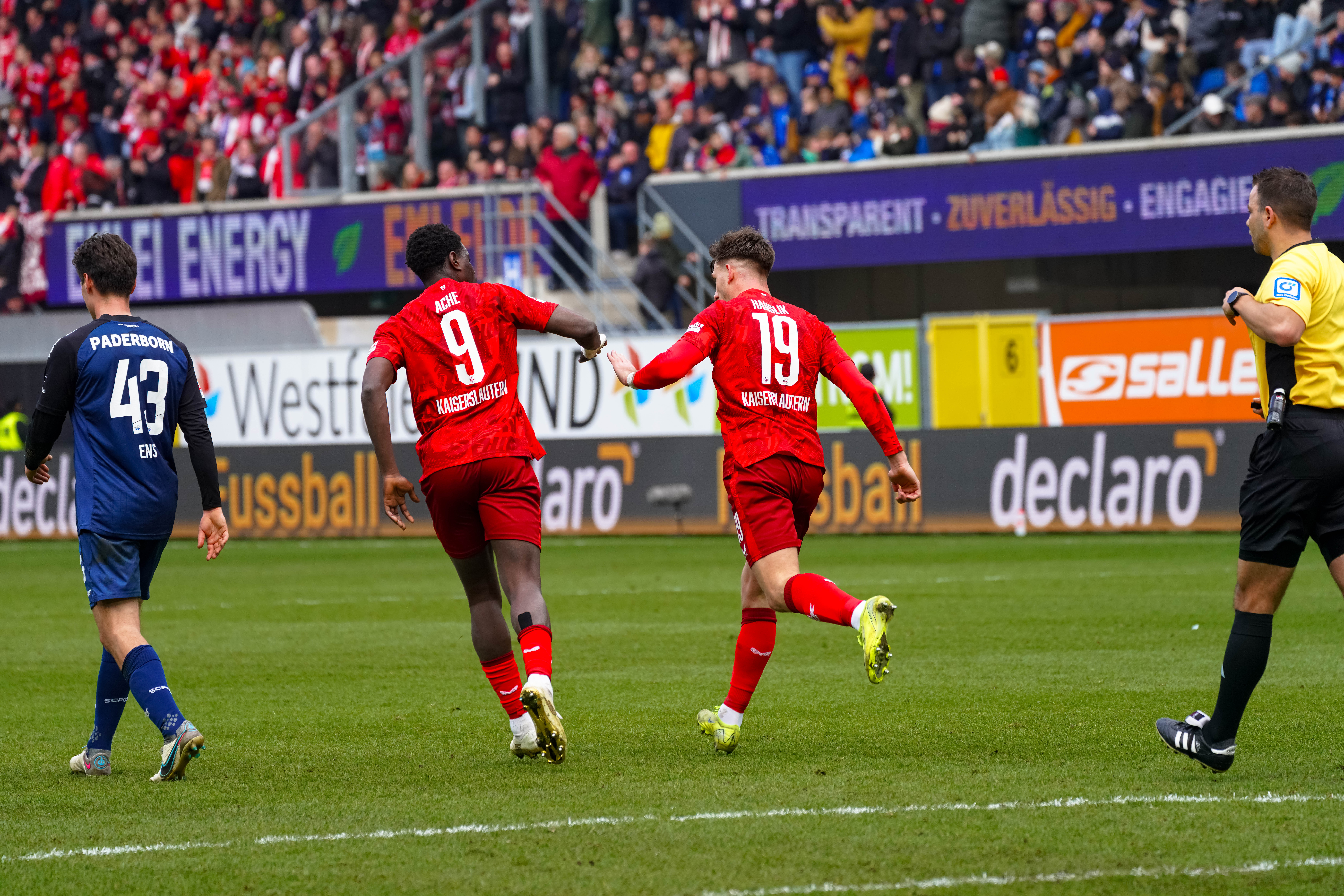 Paderborn ist aktuell wieder etwas aktiver, die Lautrer Abwehr bekommt aber immer noch ein Bein dazwischen.