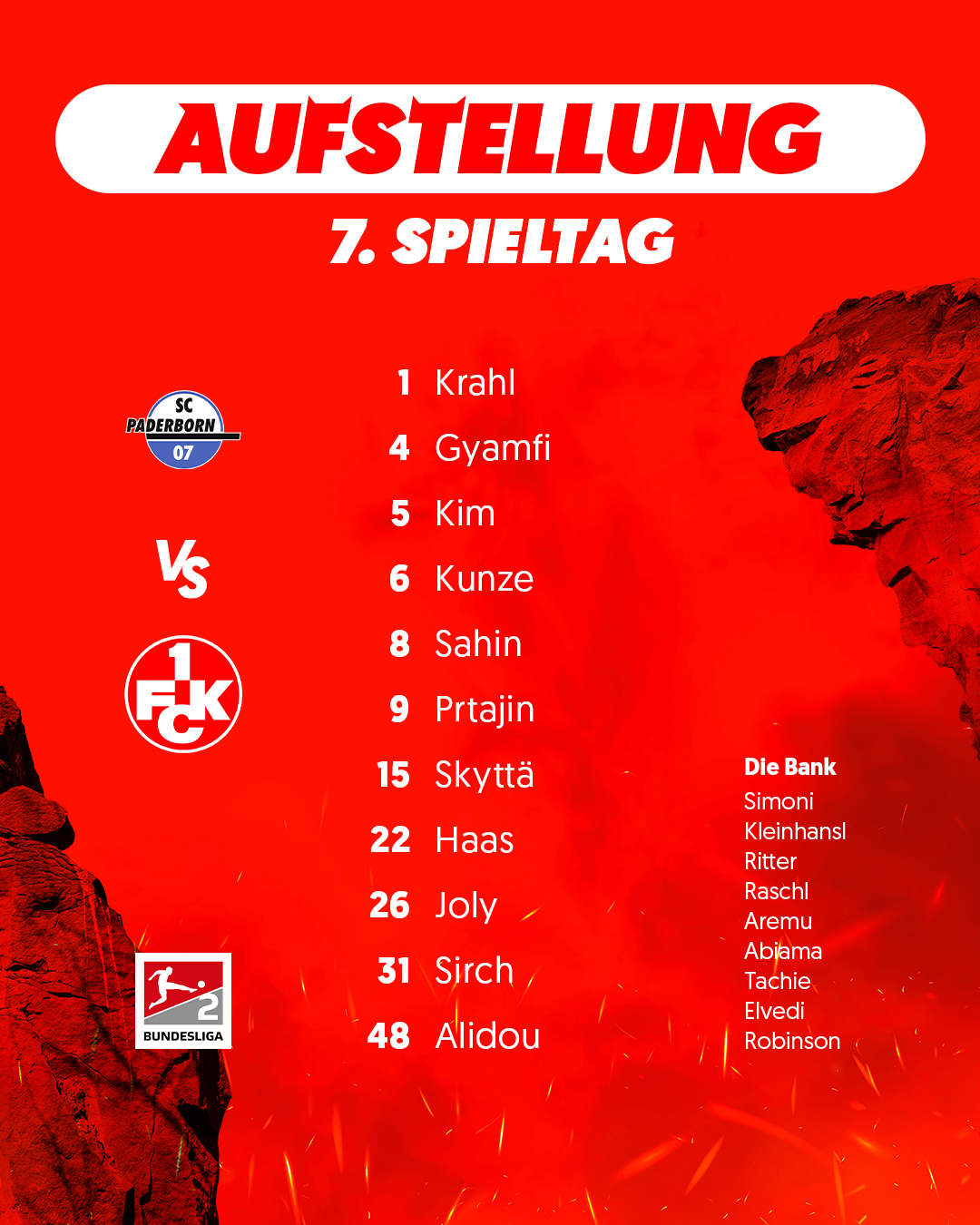 Die Roten Teufel vertrauen in Paderborn also der gleichen Mannschaft wie in den Vorwochen und verändern die Startaufstellung nach dem vergangenen Heimsieg erneut nicht.