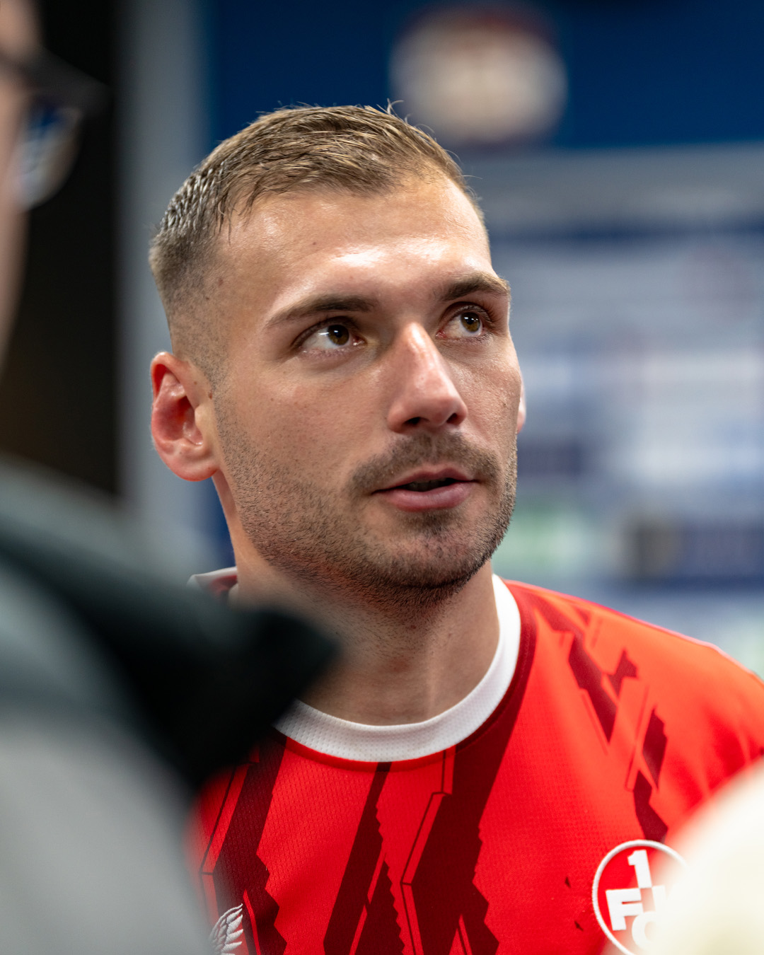 💬 Fabian Kunze: „Es ist ein offenes Spiel und du bist ein Mann weniger. Dann musst du mehr laufen und der Gegner hat mehr Raum. Klar ist es schwierig. Aber wir hatten uns mehr vorgenommen. Es ist bitter, dass wir dann relativ früh das erste Tor kriegen. Jeder hat sich trotzdem reingehauen: Läuferisch und von der Mentalität her. Eine Niederlage ist immer doof, aber wir machen weiter. Nächste Woche steht Bochum an.“