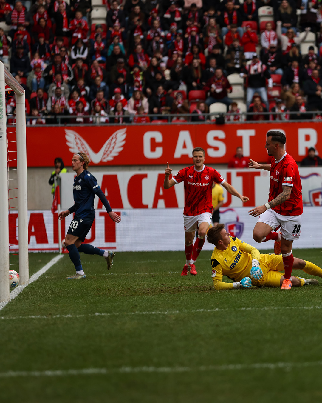 Nochmal durchschnaufen. Wieder der KSC mit der Riesenchance auf den Anschluss. Ben Farhat trifft aber zum Glück nur Aluminium, von wo der Ball ins Feld zurückspringt. Puh!