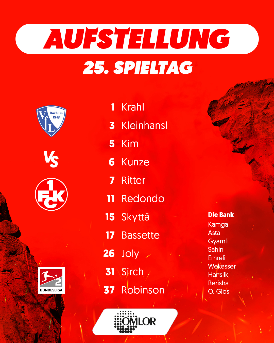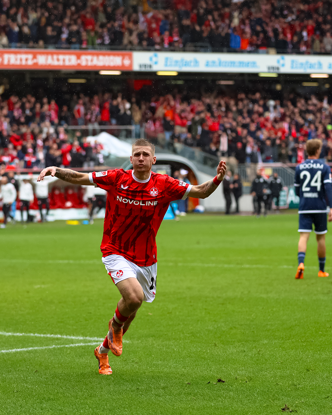 Die Mannschaften sind da, Bochum in Blau, der FCK in Rot - also alles wie erwartet.