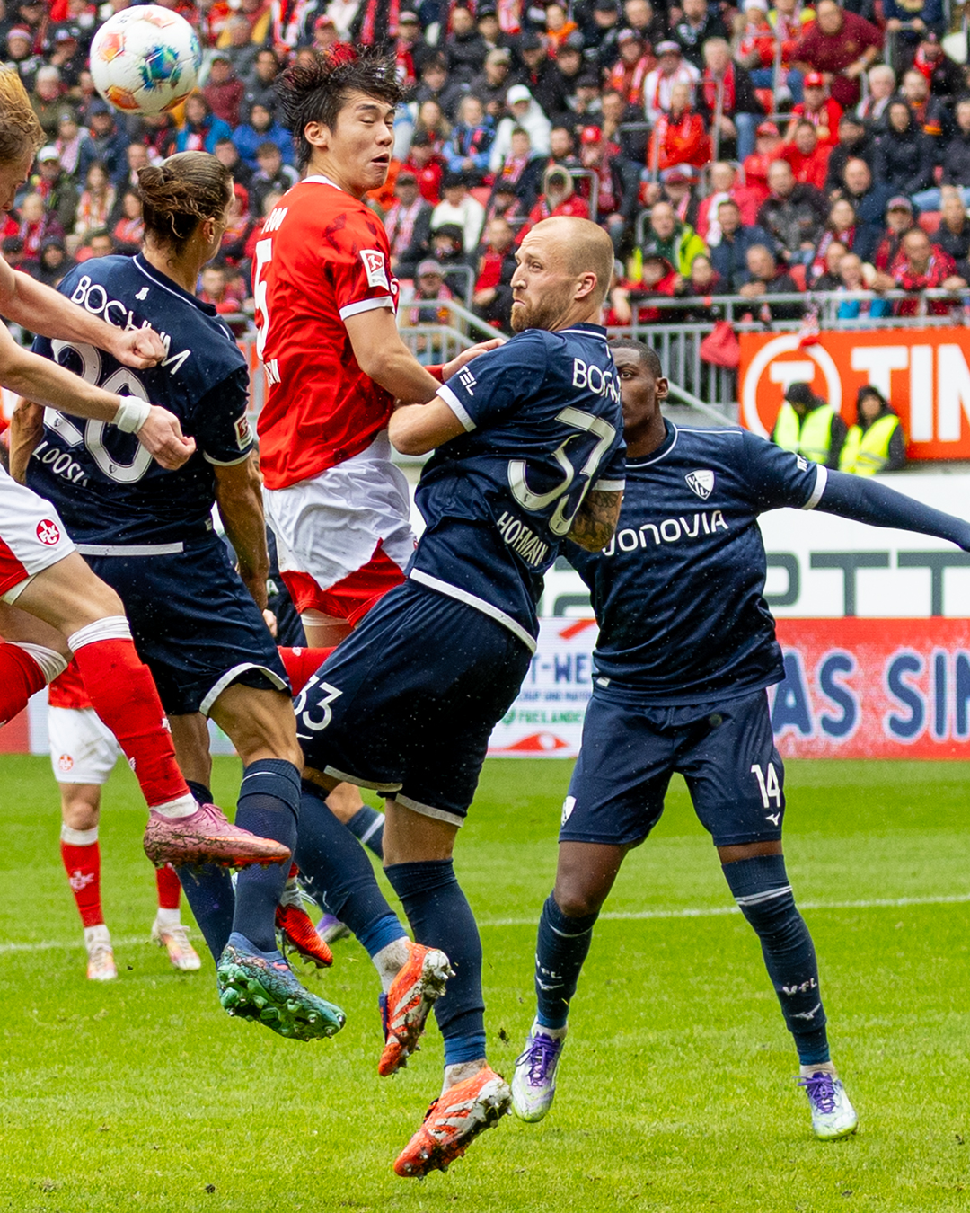 Philipp Hofmann klärt im eigenen Strafraum mit einem Seitfallzieher und holt sich den Szenenapplaus des Bochumer Publikums ab.