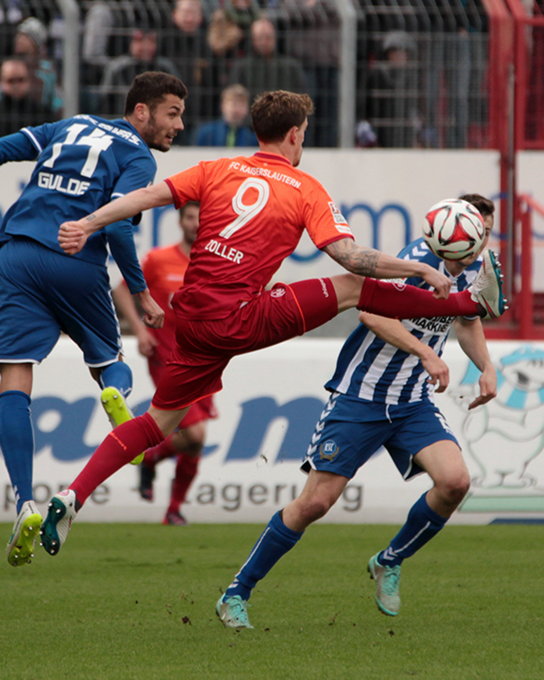 Berisha versucht am Fünfmeterraum zum Fallrückzieher anzusetzen, trifft dabei Strompf.