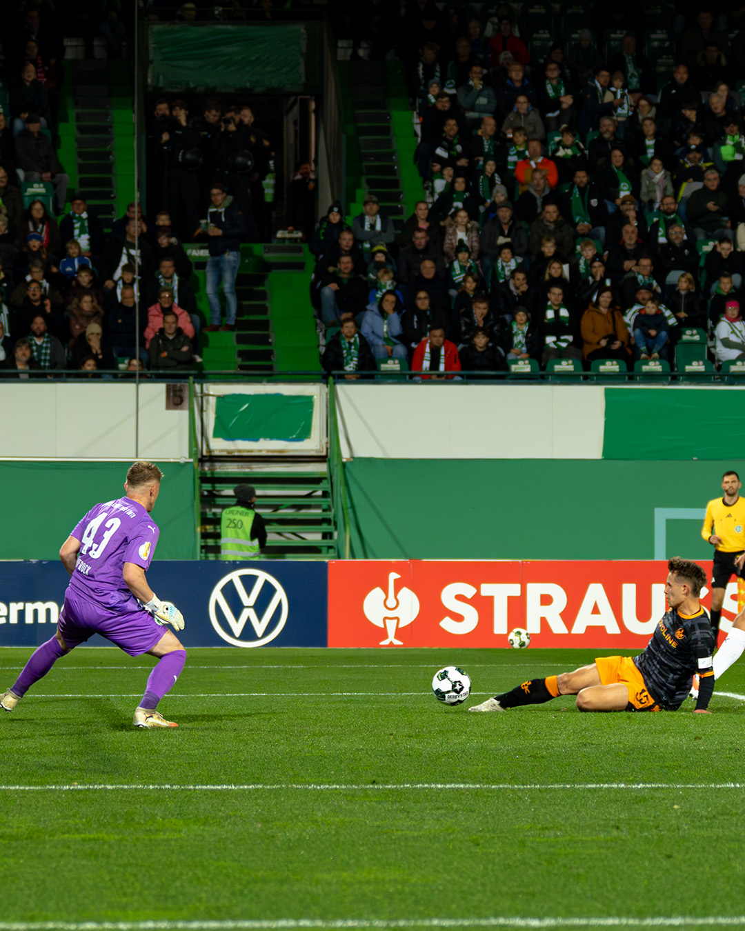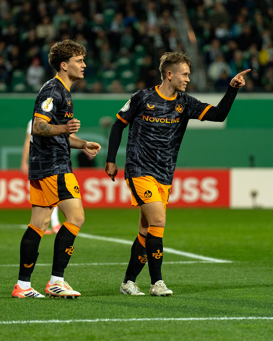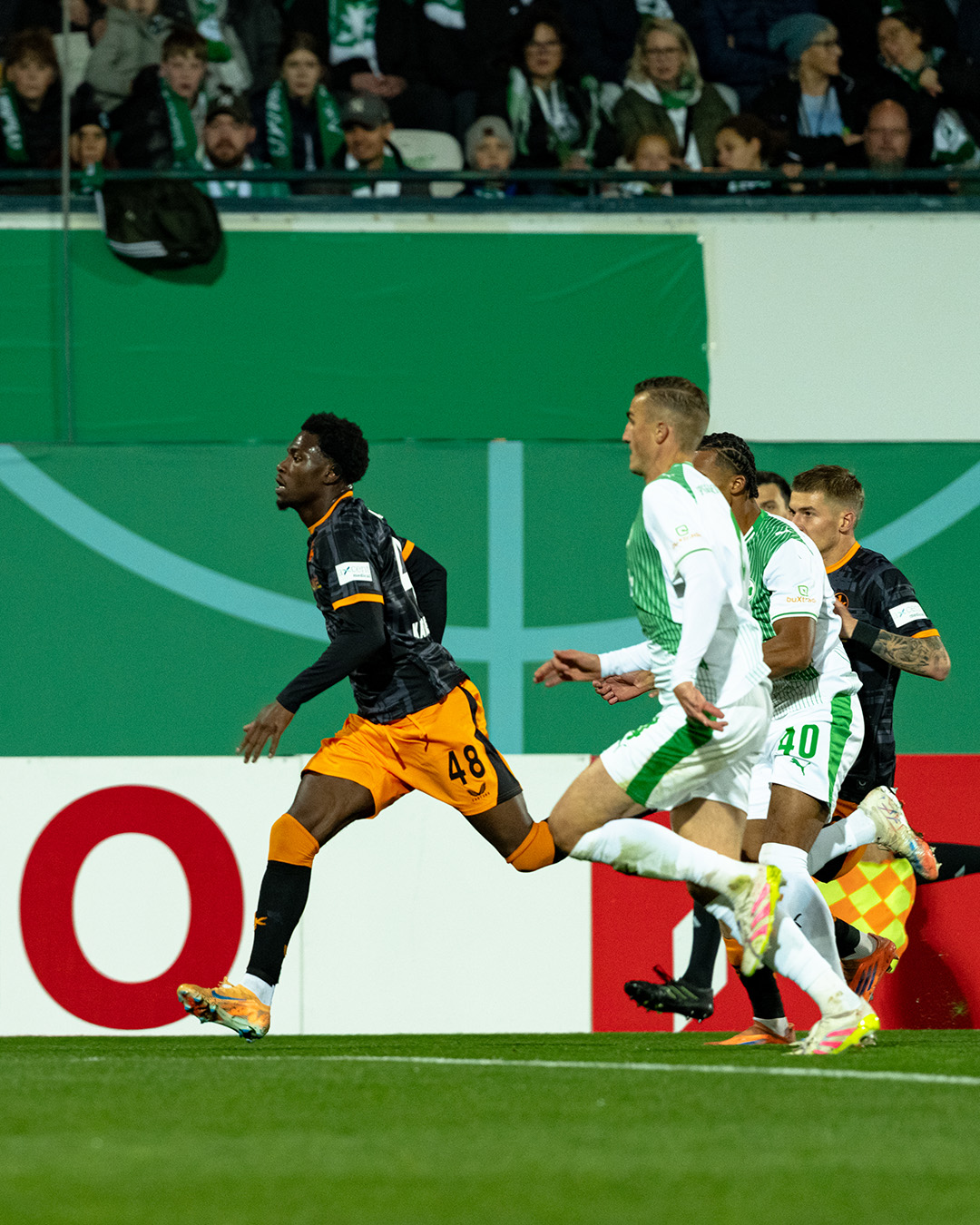 💬 Maxwell Gyamfi: „Wir wussten, dass das Spiel heute wild wird. Es ist ja auch ein K.O.-Spiel. In der ersten Halbzeit gehen wir früh in Führung, wir wussten aber auch, dass die Fürther nach der Halbzeit auf ihre Kurve spielen und Druck machen werden. Da musst du gegenhalten. Am Ende bin ich froh, dass wir gewonnen haben. Sonntag haben wir das nächste Spiel, da geht es weiter. Wir sind das heute fokussiert und professionell angegangen. Wir waren gut eingestellt, wussten, was uns erwartet und haben hier auch vor Kurzem schon gespielt. Wir wollten auf das frühe Tor gehen, das hat geklappt. Was wir uns ankreiden können, dass wir die Konter schlecht ausgespielt haben. Aber am Ende des Tages haben wir zu Null gespielt, das haben wir in den letzten Wochen trotz guter Defensivarbeit nicht immer geschafft. Einen Wunschgegner für das Achtelfinale habe ich nicht, aber ich wünsche mir ein Heimspiel.“