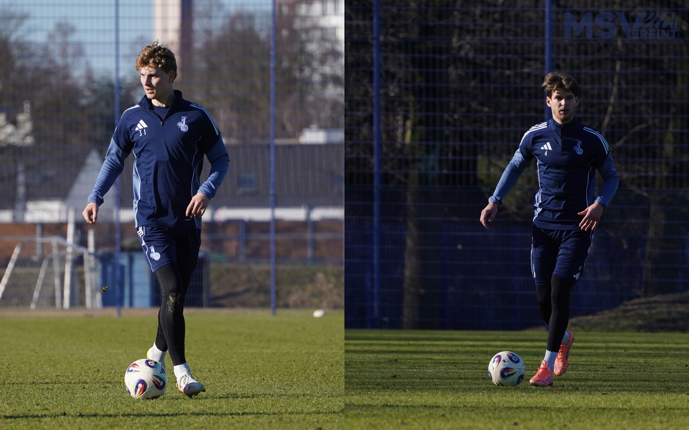 Hinter das Mittwochstraining können wir einen Haken machen: Mit dabei - nun auch offiziell in blau-weißen Trainingsklamotten - unsere beiden Neuzugänge Dominik Kother (links) und Dominik Becker (rechts).