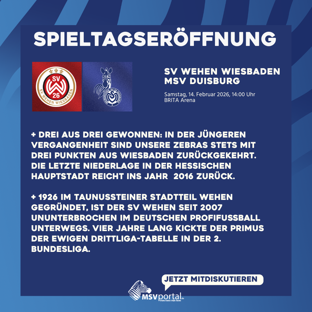 Da ist sie schon, die nächste Wedau-Woche! Unser Spielverein bereitet sich auf die nächste spannende Herausforderung vor. Hier gibt's nach und nach die wesentlichen Infos für die Partie beim SV Wehen Wiesbaden als Blog aneinandergereiht. Viel Vergnügen! 🦓