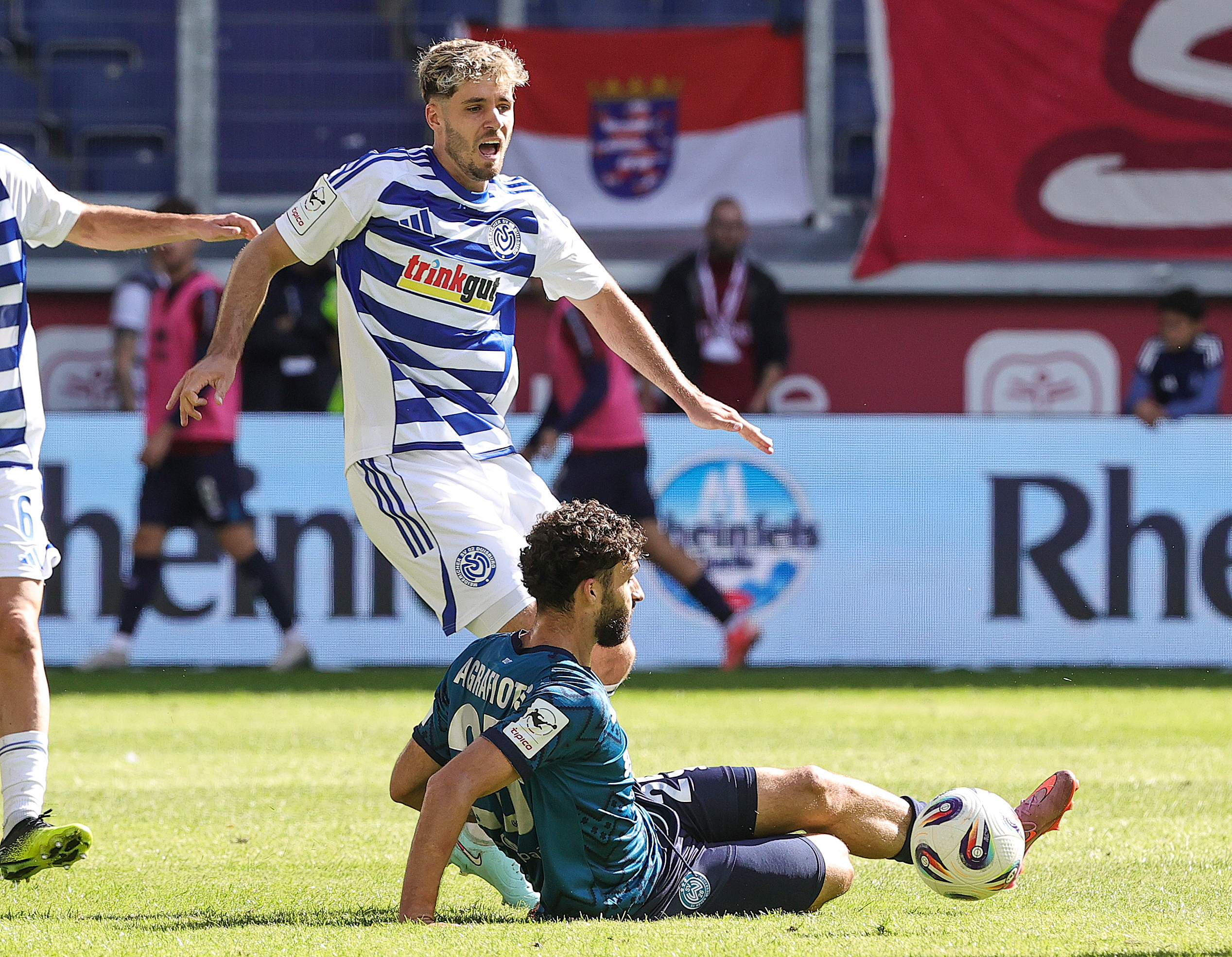 Niklas May sieht Gelb! Patrick Sussek zieht mal für den MSV an und nähert sich der Wiesbadener Box. Vorlagengeber May erwischt unseren Flügelflitzer von hinten und wird dafür verwarnt. Freistoß!