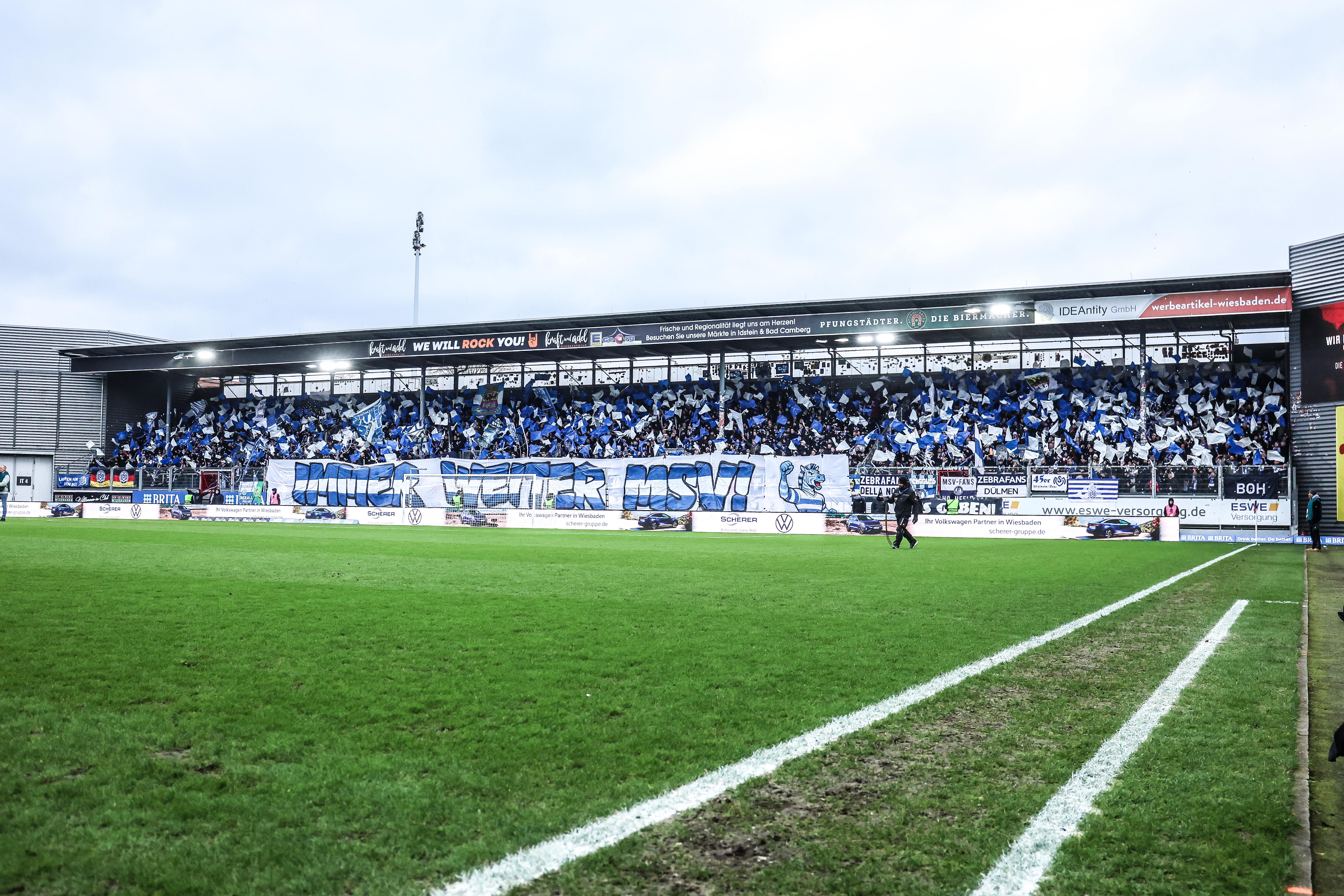 Offizielle Zahlen aus Wiesbaden sprachen im Vorfeld von über 3.000 Zebras, die sich eine Karte gesichert haben. Die Dunkelziffer in neutralen Blöcken liegt deutlich drüber. So oder so. Es ist der größte Gästeanhang, den die BRITA Arena in dieser Saison gesehen hat.