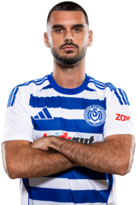 Amaimouni will den Ball aus knapp 20 Metern andrehen und bleibt mit diesem Versuch in der MSV-Mauer hängen.