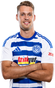 Fallmann gerät auf seiner Linksverteidigerposition unter Druck und schlägt den nächsten Pass ins Seitenaus. Bis hierhin steht die MSV-Defensive mehr als solide.