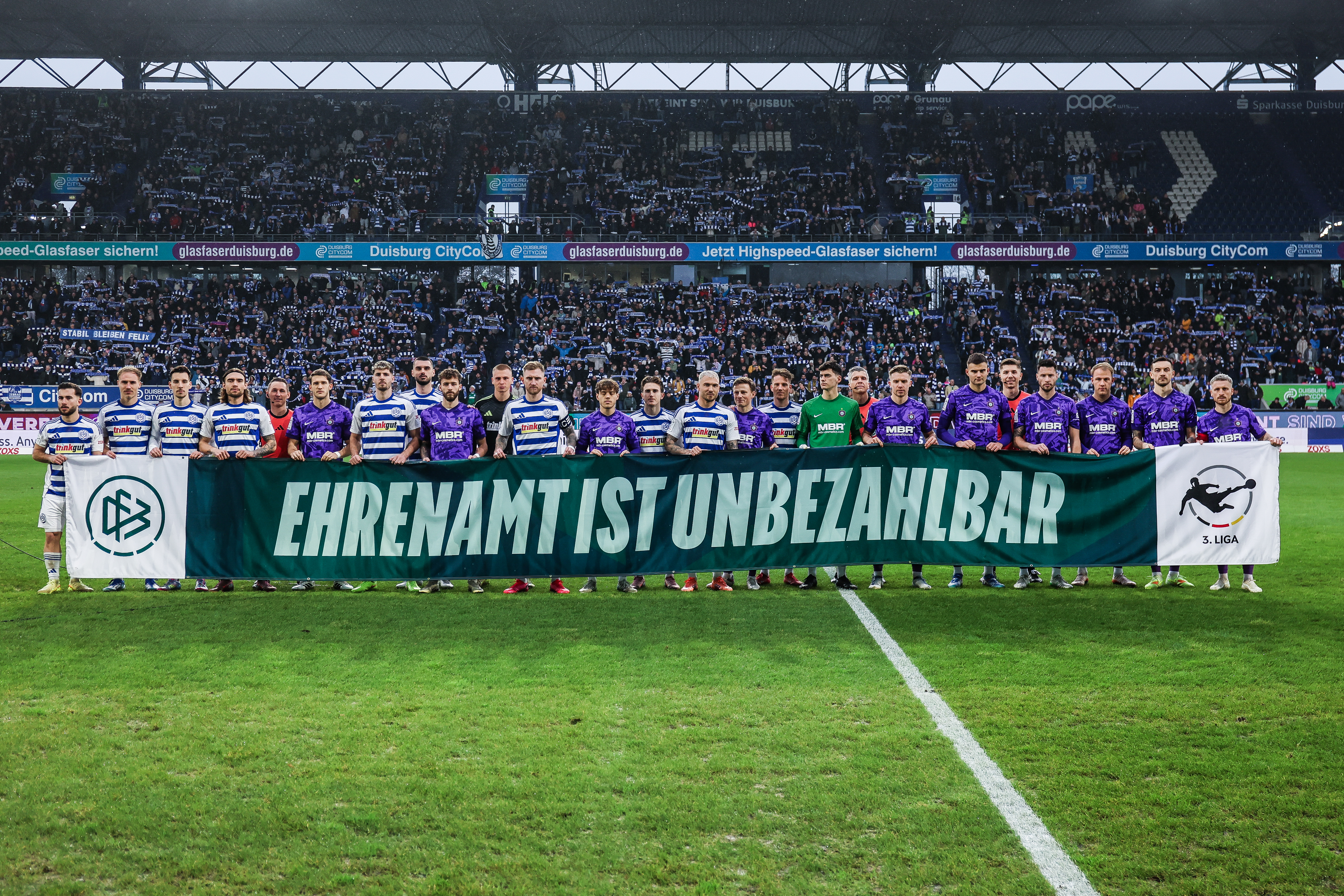 Parallel dazu wirbt Stefan Leiwen im Zuge des Ehrenamts-Spieltags des DFB für das Thema Engagement beim Meidericher SV.