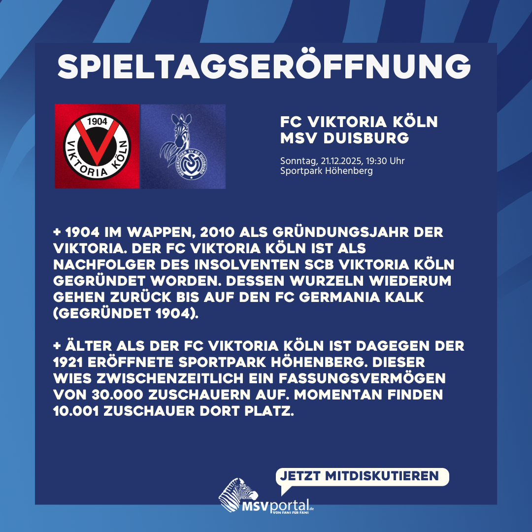 Finale furioso: Der letzte Weg in 2025 führt unseren Spielverein am Sonntag, 21. Dezember 2025, gen Schäl Sick! Alle Infos zum kommenden Match beim FC Viktoria Köln gibt's hier im MSV-Blog ("Eure Wedau-Woche"). 🔵⚪️